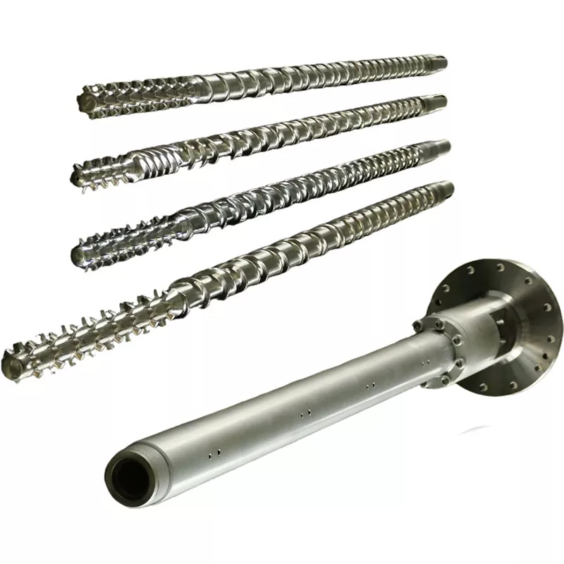 Wy brûke ymportearre nikkel-basearre alloy + wolfraam alloy. De lingte fan 'e alloy is mear as 400mm, en de djipte is 2 - 3mm. Alloy hurdens kin berikke HRC58-65. De alloy kin oanpast wurde neffens klanten 'easken te berikken bettere wear en corrosie ferset, dus it útwreidzjen fan de tsjinst libben fan' e skroef en barrel.